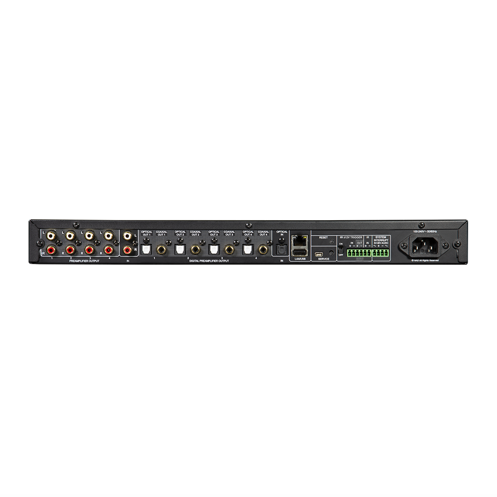 Stream Music to Multiple BluOS ZonesThe CI 580 V2 packs four stereo zones into a 1U rack space to provide the most flexible and cost-effective BluOS package. Multiple CI 580 V2s can be used to provide as many zones as required, and each zone can be grouped together in perfect sync using the BluOS Controller app, or you can play individual streams in different zones simultaneously. The CI 580 V2 is now more flexible than ever with AirPlay 2 built-in for easy integration into the Apple ecosystem.