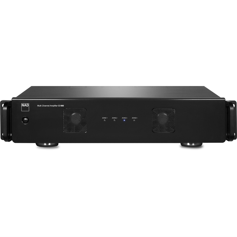 8 channels of clean NAD PowerWith the CI 980, NAD introduces a new generation of high performance amplification for custom installation and distributed audio systems. The CI 980 has 8 channels of clean, low distortion power set up in a 4 stereo zone configuration. Boasting 50 watts per channel, the CI 980 is designed to drive low impedance speakers and long wire runs. By utilizing the latest high efficiency switching amplifier technology, the CI 980 is an all-new design built to be small, light, and very energy efficient, with superb musical sound quality for which NAD is known.
