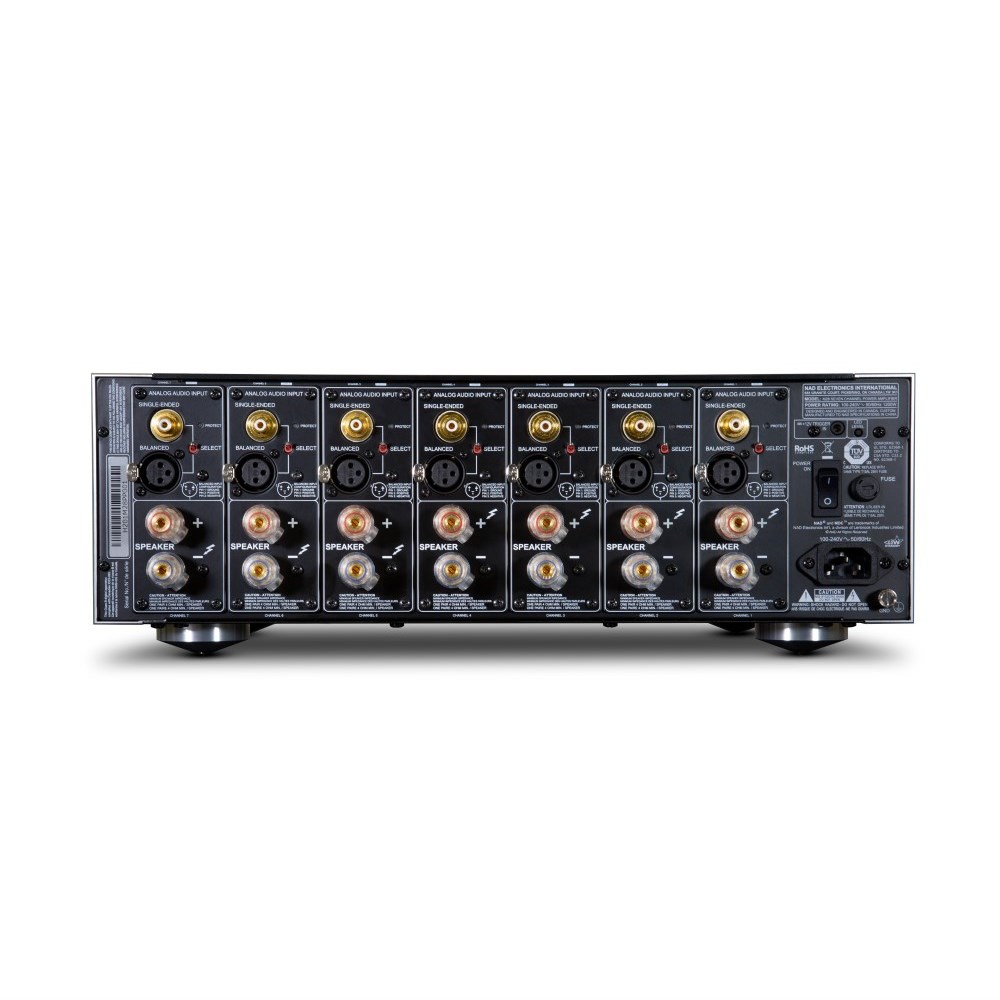 Rated conservatively at 200W per channel (8 ohms) and well over 320W dynamic power (8 ohms; all channels driven), the result is breath-taking, lifelike surround sound performance, be it from the latest action-packed film with tremendous dynamics or a subtle classical piece with delicate and detailed passages. The M28 can accept both balanced and single-ended inputs, and features high-quality binding posts for speaker connection. The compact dimensions of this highly energy-efficient design belie the massive amount of power available for the most demanding music and movies.