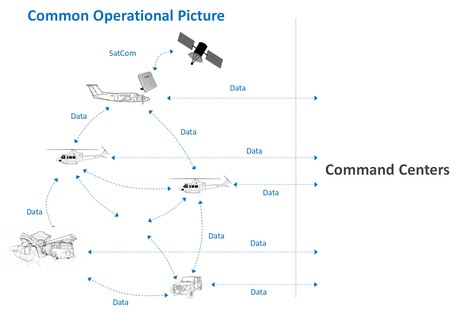 The key to this is the presence of real-time metadata (primarily positional information) along with the video feed, and a bidirectional network connection to the aircraft, enabling direct interfacing from the command and control systems to the inflight sensor platforms. The availability of this information for the control centre significantly enhances the ability to manage the safety and operational efficiency of ground crews.