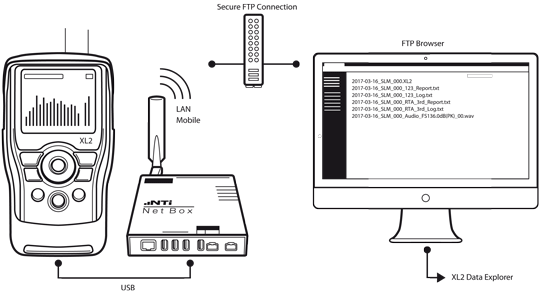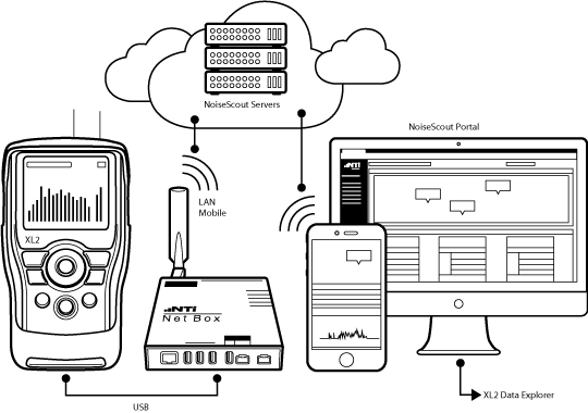 NTi Audio manages and facilitates remote access to the XL2 Sound Level Meter for your convenience. The offered infrastructure overcomes the limitations of local area networks and avoids the necessity for you to set up a router with a direct connection from the NetBox to your PC. The remote access is offered within an innovative “pay-per-use” credit scheme, providing transparent and predictable cost control. Usage is charged per calendar day with remote data download from the XL2 Sound Level Meter. Alternatively an annual subscription service is available.