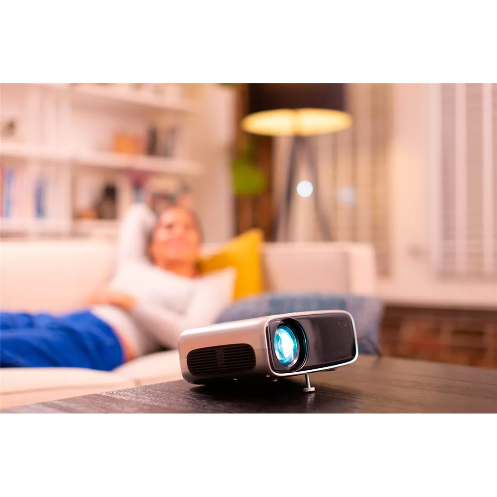 Movie nights or gaming in your bedroom in Full HD 1080p! Built-in Philips OS with pre-loaded apps, Dual Band Wi-Fi, Bluetooth and integrated multimedia player. Youtube, Netflix and more. Auto keystone, 4 corners correction and digital zoom.