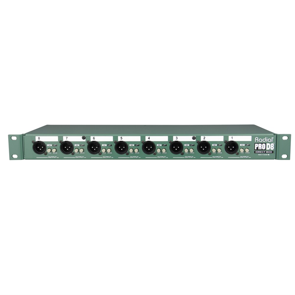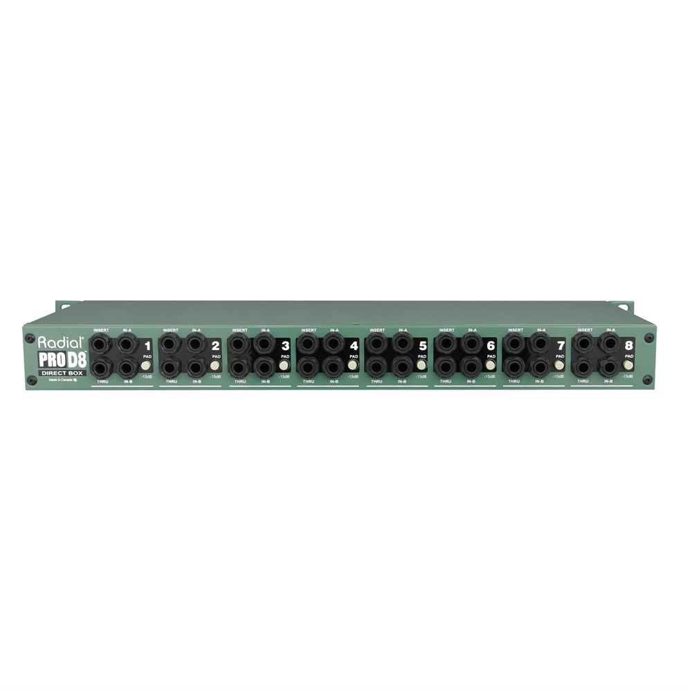 The ProD8 is a high performance 8-channel passive direct box optimized for keyboard rigs in professional touring, with redundant 1/4″ inputs for each channel and a completely passive design that requires no power to operate.