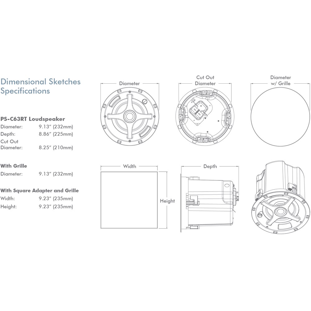 Sonance Professional Series PS-C63RT is a 70V/100V/8 Ohm selectable In-Ceiling Speaker that features a one-piece bezel-less grille that is magnetically secured and allows for a one-step painting process to simplify installation and minimize visual distraction.