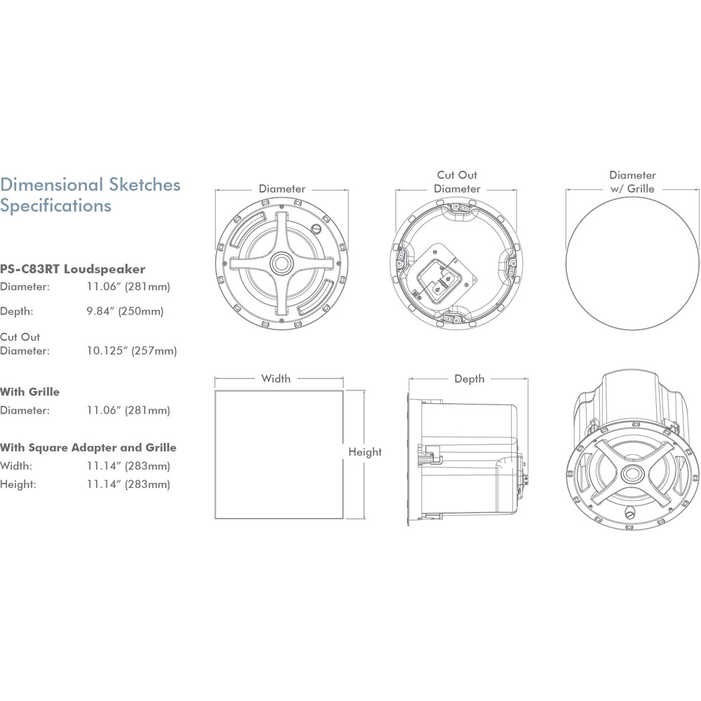 Sonance Professional Series PS-C83RT is a 70V/100V/8 Ohm selectable In-Ceiling Speaker that features a one-piece bezel-less grille that is magnetically secured and allows for a one-step painting process to simplify installation and minimize visual distraction.