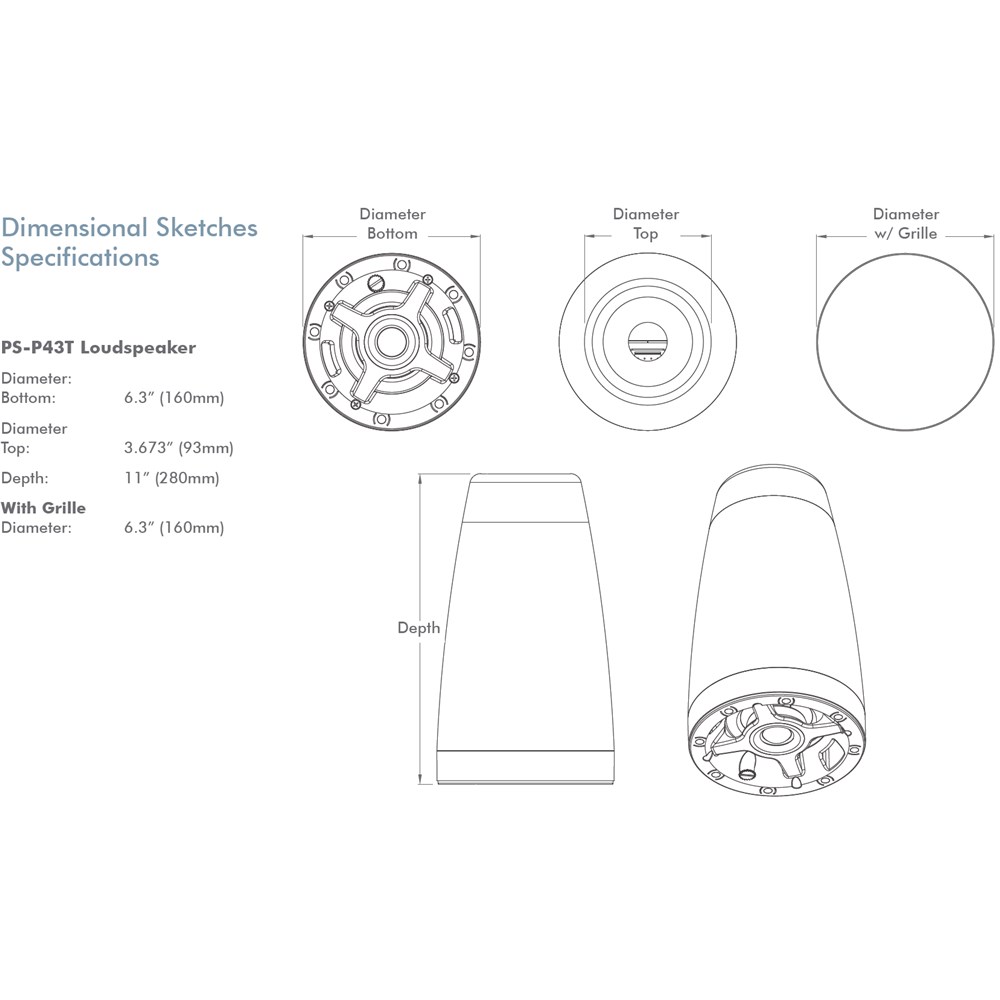Sonance Professional Series PS-P43T Pendant Speaker utilizes a minimalistic design similar to pendant lighting to blend discreetly into the environment, and take advantage of the same one-piece grille design as the In-Ceiling Speakers to deliver consistent sight lines when installed in the same space.
