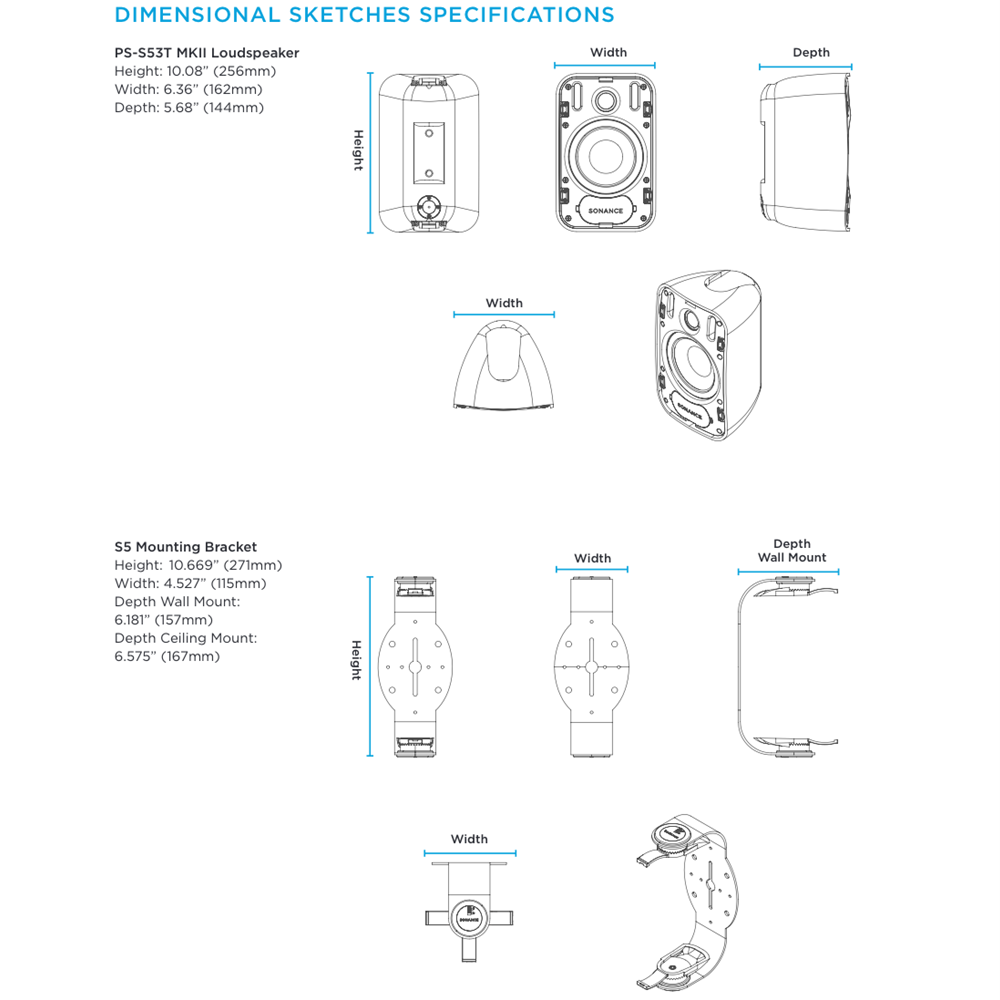 Sonance Professional Series PS-S53T MKII Surface-Mount Loudspeakers feature the Patented FastMount bracket and front cable connection to speed up the installation process and provide a clean appearance.