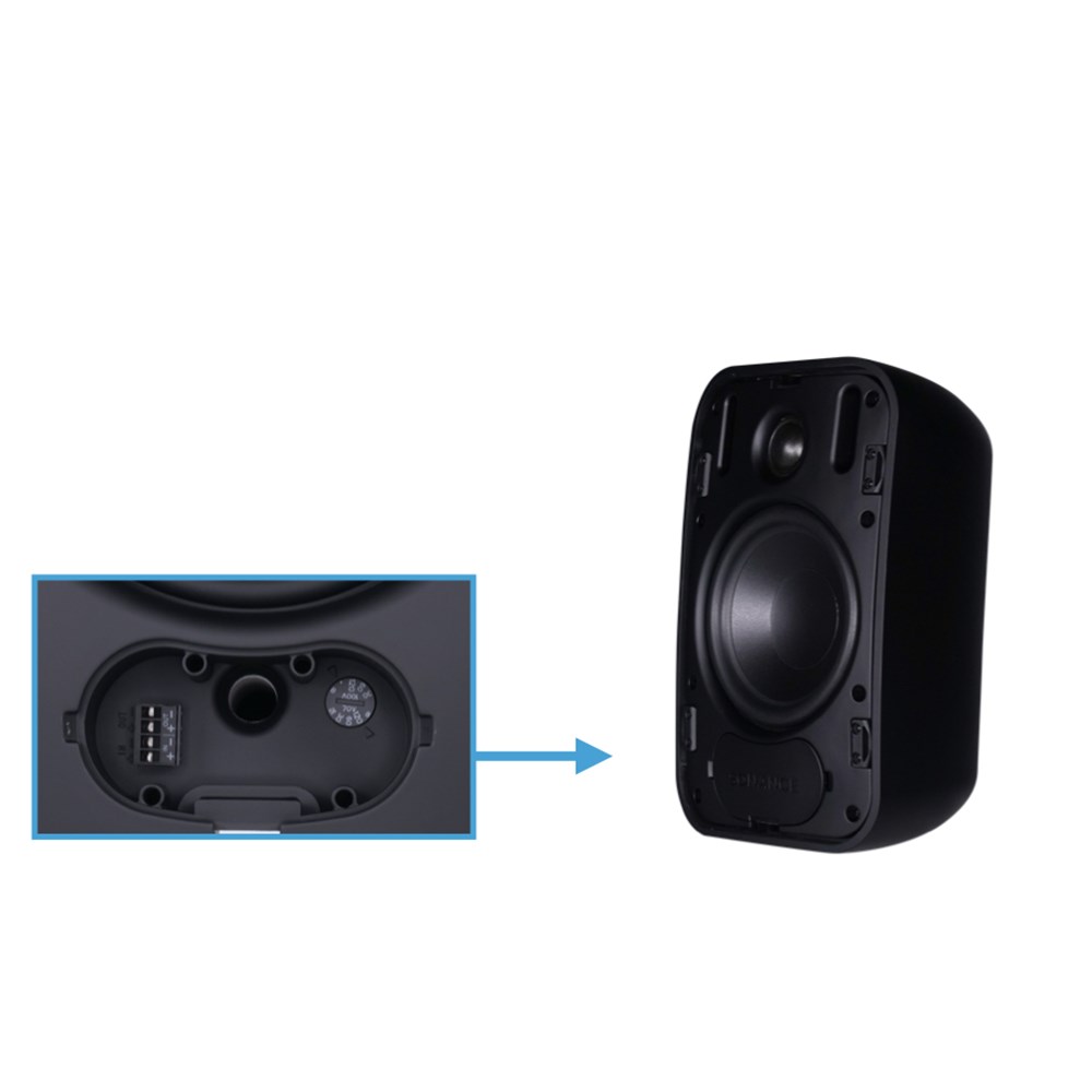 The IPX4 rated construction features a high-impact, extreme temperature resistant cabinet and corrosion-resistant powder coated aluminum grille, lending itself perfectly in both indoor and outdoor applications.