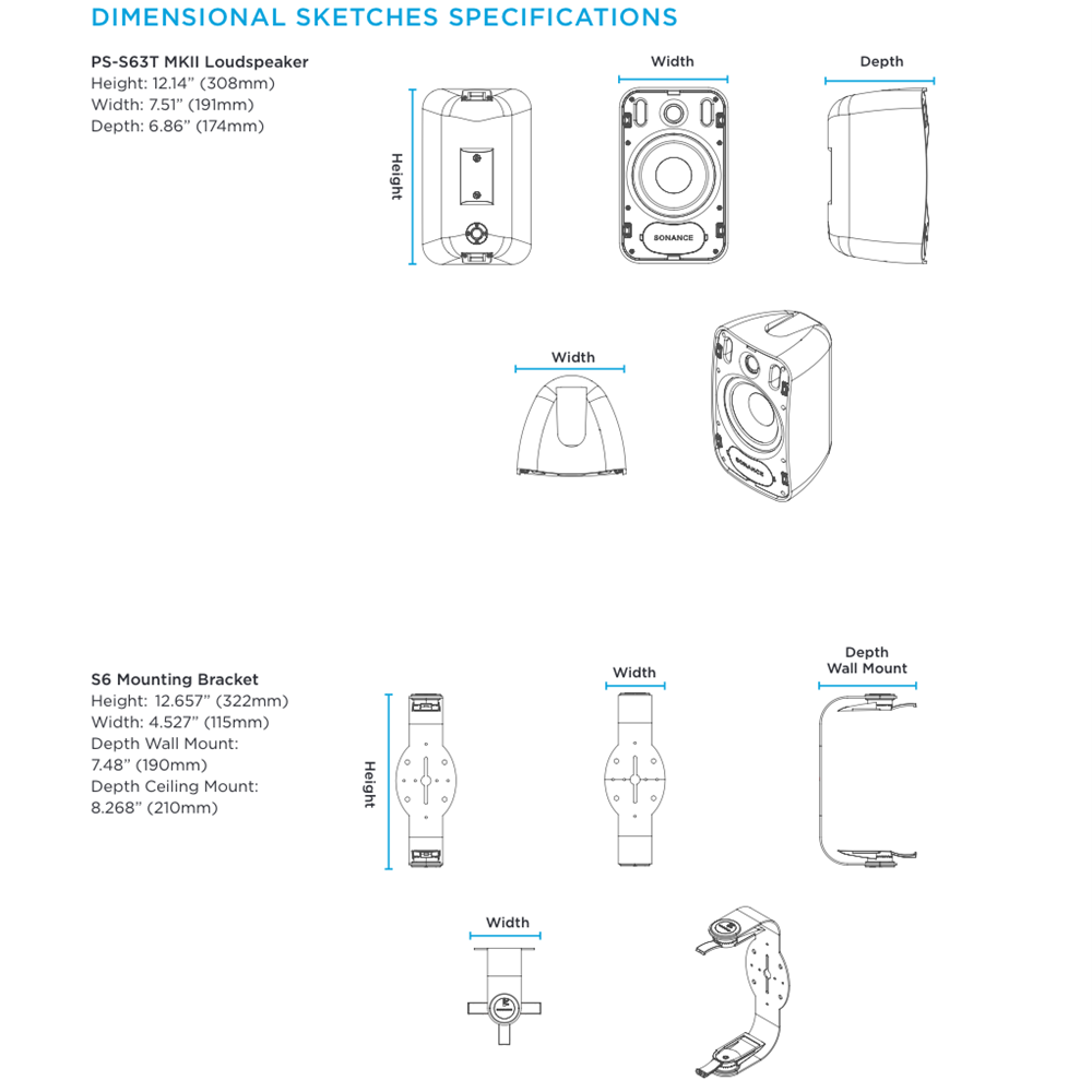 Professional Series 6" Surface Mount MKII LoudspeakerSonance Professional Series PS-S63T MKII Surface-Mount Loudspeakers feature the Patented FastMount bracket and front cable connection to speed up the installation process and provide a clean appearance.