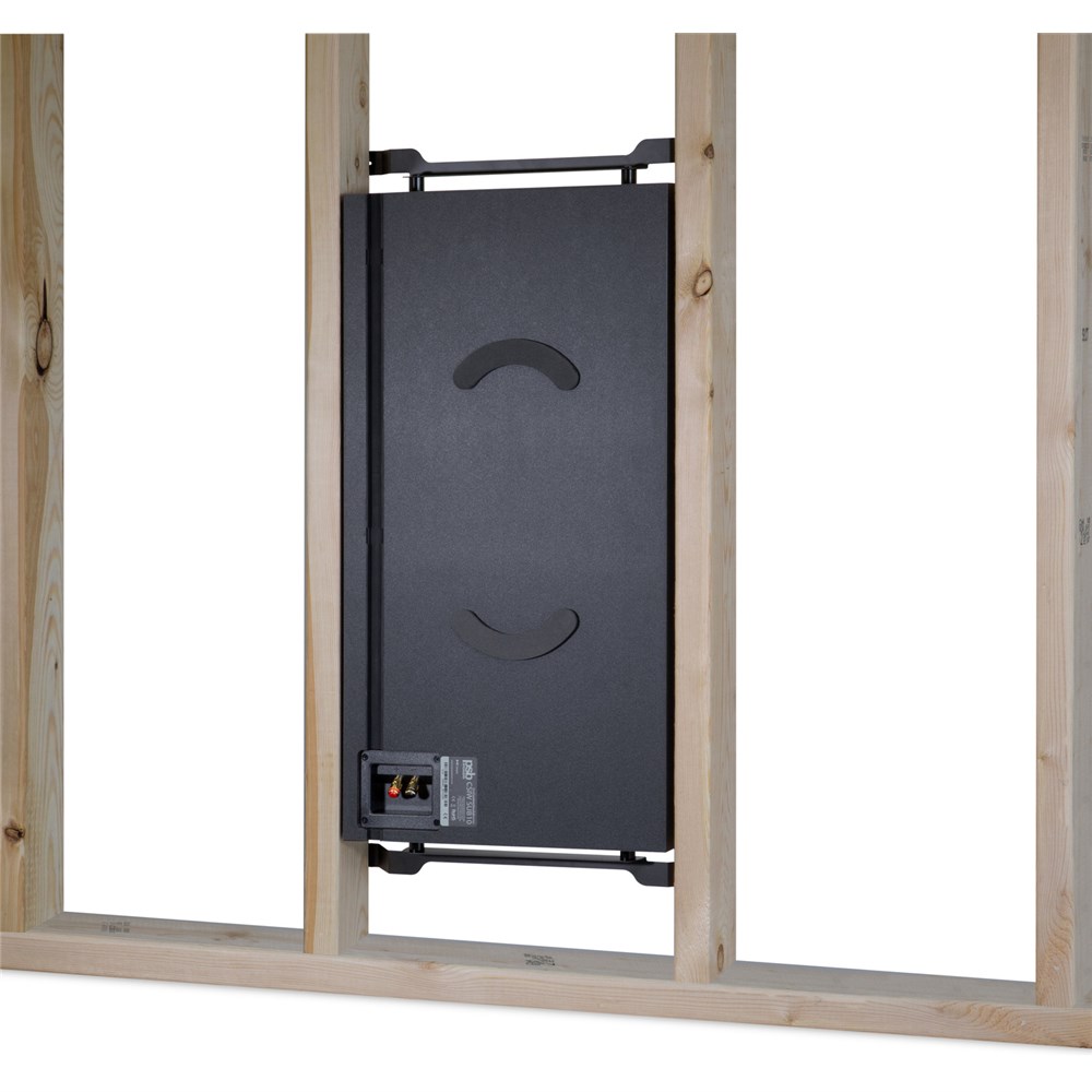 The unique design then couples the subwoofer cabinet directly to the stud beams and allows the grille to accommodate various wall thicknesses. A high excursion shallow driver delivers bass response that is both precise and plentiful, precisely what you would expect from PSB.