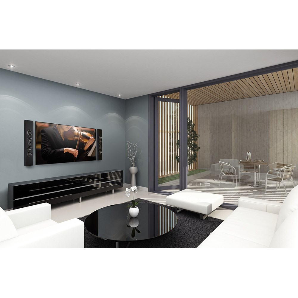Ultra-slim, single-channel flat-panel speakerThe PWM2 achieves a level of tonal balance and detail which sets a new standard for on-wall speaker design. Every aspect of this speaker was painstakingly studied and designed to create a refined and dynamic performance. Both music lover and movie buffs will be impressed with its effortless reproduction of the most demanding material. It’s 3-way design features a 1” titanium tweeter, customized dual 3” mid-range drivers and dual 4” woofers which combine to project an expansive soundstage regardless of whether it is mounted vertically or horizontally.