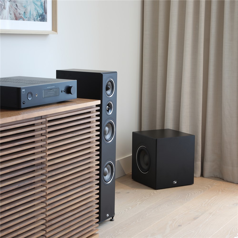 Premium AmplificationDriven by renowned nCore technology, the BP8’s Hybrid Digital amplifier is conservatively rated at 500 watts – serious power to deliver epic dynamics for those big moments. Beyond being plentiful, this power is incredibly refined, allowing a high degree of precision and considerable control of the driver’s movement.Small footprint. Size-defying sound.The BP8 will defy your expectations with its performance and compact 14 x 13 x 13" (HWD) dimensions that outshine bulkier competitors. This sleek powerhouse, available in Satin Black and Satin White finishes, effortlessly blends precision engineering and style, making it a seamless addition to your home theatre setup.