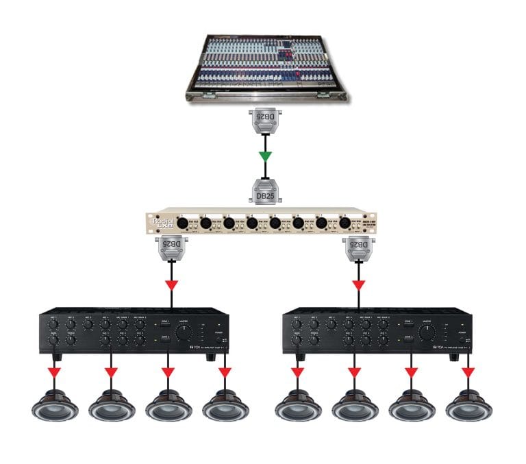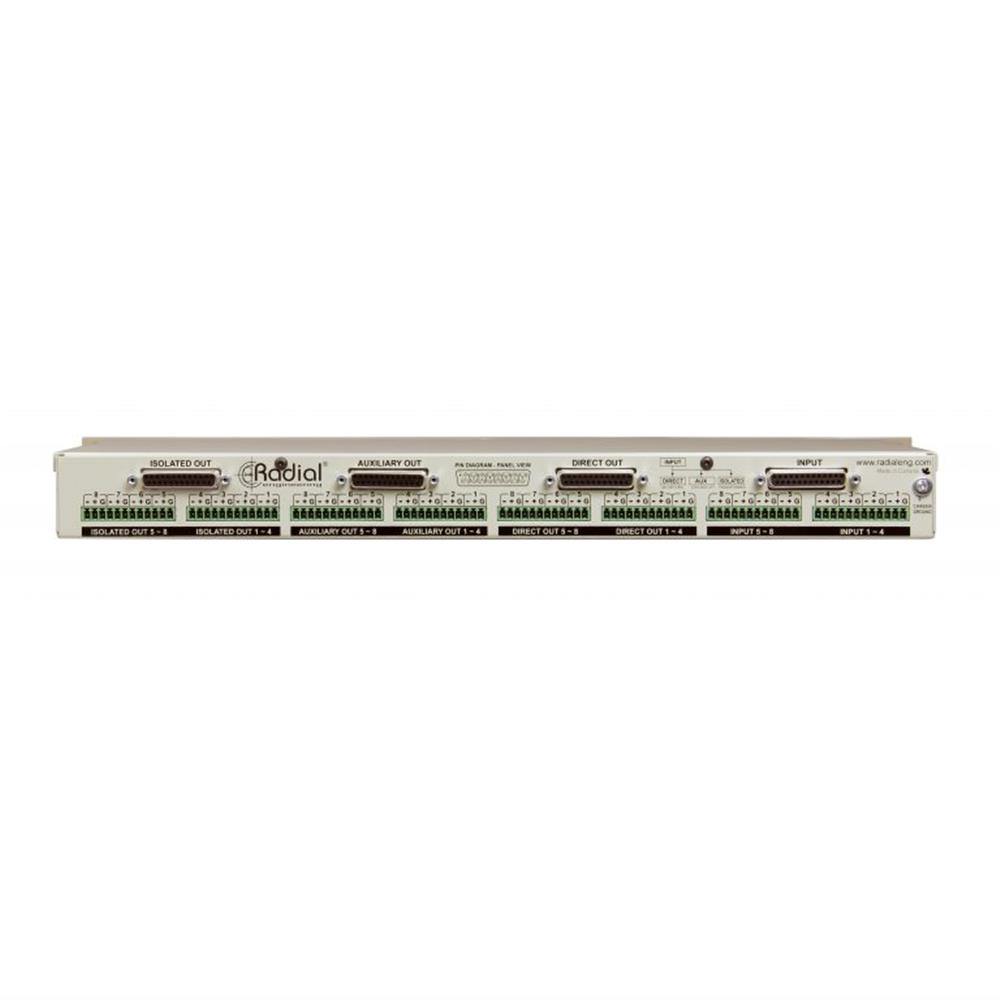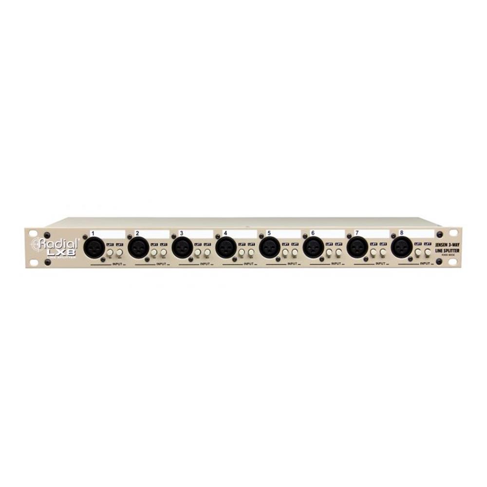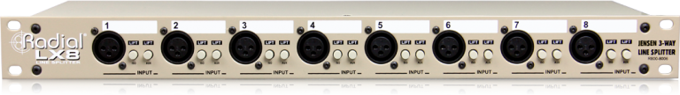 The Radial LX8™ is an eight channel passive line-level splitter designed to send multiple channels to three destinations at once, while providing transformer isolation and eliminating hum and buzz caused by ground loops.