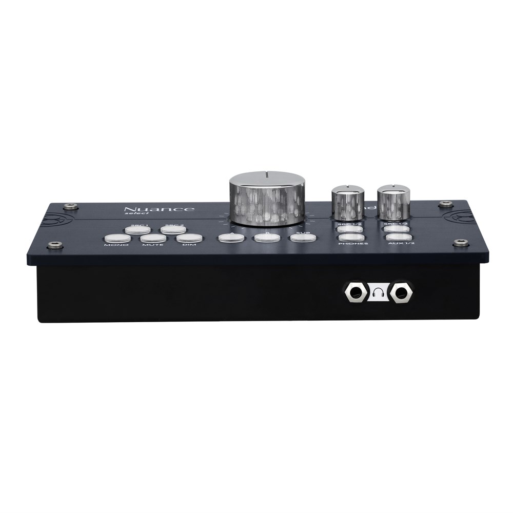 The Nuance Select is a studio monitor controller designed so you can hear every single detail through your speakers, with a distortion profile so low that it cannot be measured by most audio testing equipment. Complete audio transparency is achieved through an innovative circuit that allows you to hear the true mix through your speakers without any sacrifice in audio quality, all while still providing you with total control over your monitor setup.