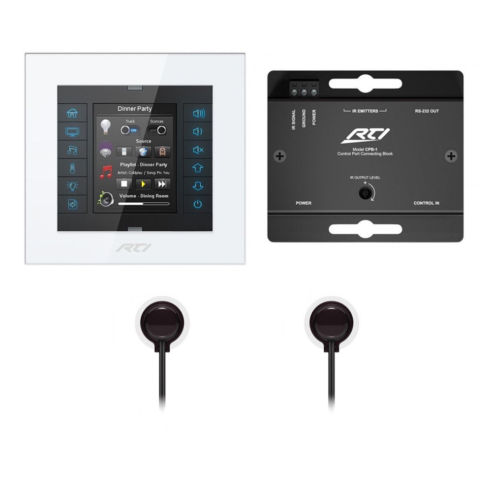 The CPB-1 Control Port Connecting Block provides a cost effective solution for one-room installations such as classrooms, that require an in-wall controller and both infrared and RS-232 control of local devices. The CPB-1 provides power to one RTI user interface and has two output ports that allow the connection of up to two single or dual infrared emitters. It also incorporates an RS-232 port for control of devices without the need of an RTI processor.