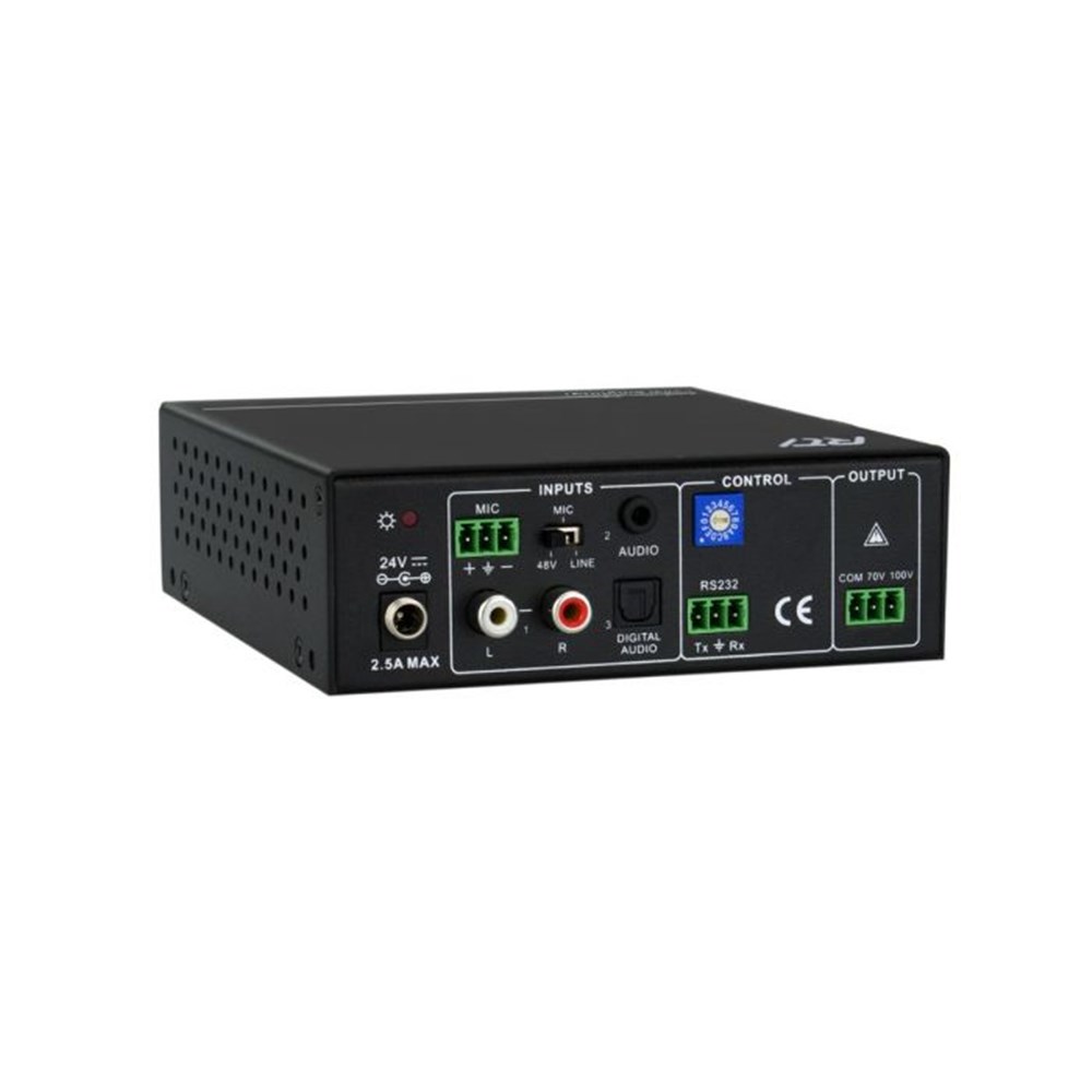 The AMV-340 is a compact-sized professional-grade Class-D 70/100V amplifier for commercial distributed speaker systems. Capable of 70 or 100 Volt transmission of audio signals, the amplifier allows the distance between amplifier and speaker to be extended by a factor of 10 and more.