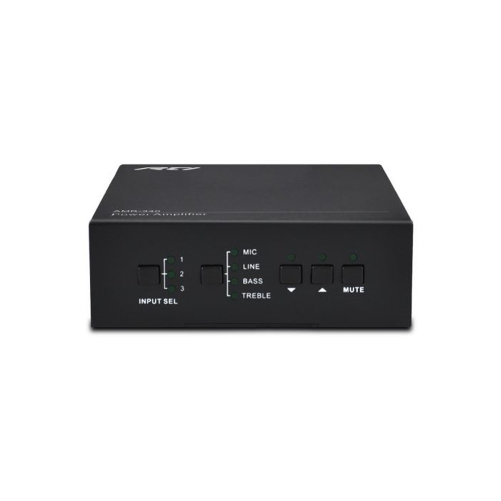 AMV-340 is designed for hotel, bar/restaurant grocery store application or any application where long-distance wiring of multiple speakers is required. It can also be used as a PA system, playing background music and making announcements via the connected microphone.
