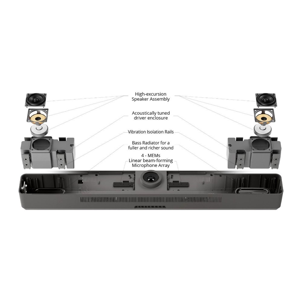 Speaker Bar2 full range 8-Watt speakers with bass radiators ensure that every voice is heard with full presence and clarity.