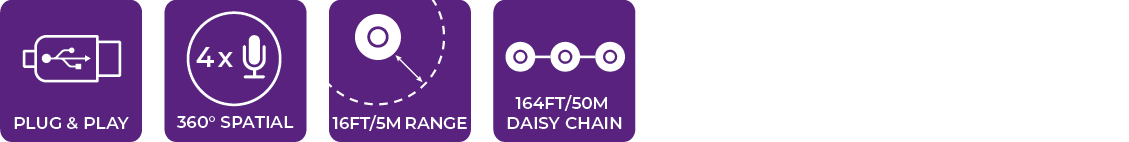MicrophoneLike the main UC-IVB-50 unit, each UC-IVB-EXM provides 4 MEMs microphones and a 360° (omni-directional) pickup pattern to reach everyone within its range (~3 meters)