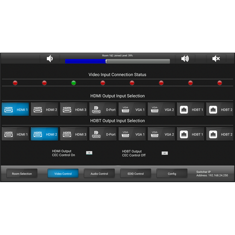 APEX file available - significantly reducing on-site configuring.Single box solution - reduces cabling and installation time. The VXP-82 combines a robust control processor with a built-in Audio/Video presentation switcher to deliver a single-box solution for conference rooms, classrooms, and lecture halls. VXP-82 enables control from any RTI touch panels, keypads, remote controls, or mobile apps, while the 8x2 switcher distributes Audio/Video signals over HDMI and HDBaseT simultaneously to up to two rooms. Existing in-room USB web conferencing cameras, microphones and speakers can be connected and switched as well as traditional analog or digital audio and video sources such as computers / laptops, document cameras, media servers and streamers, DVD players, and microphones.