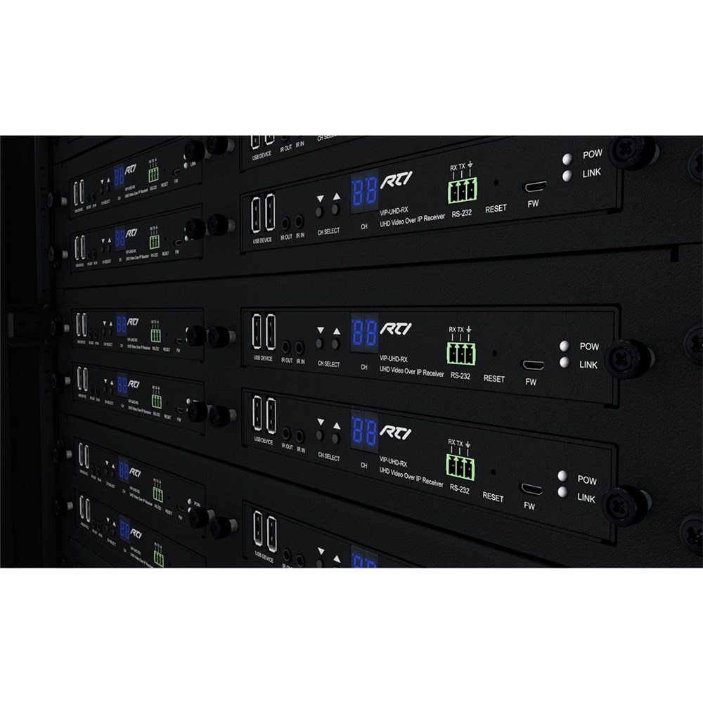 The RTI Video over IP (VIP) distribution platform enables distribution of 4K video over a 1GB Network switch to virtually unlimited endpoints. The result is an exceptionally flexible and scalable system that be installed in minutes and controlled natively within the RTI control environment.