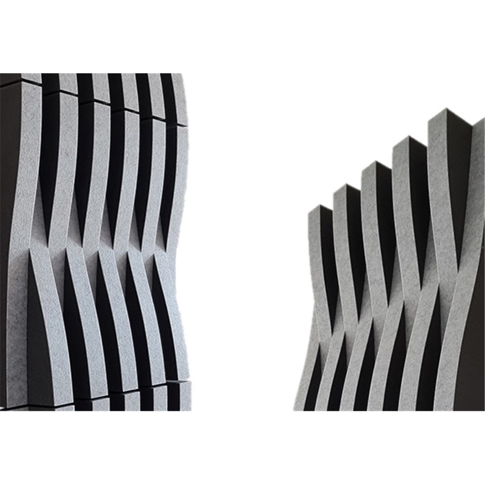 Low-mid to high frequency absorbers in a modern shape with class A sound absorption (ISO354) . The product is a combination of PU acoustic foam with increased hardeness, laminated with a high quality PET fabric layer.