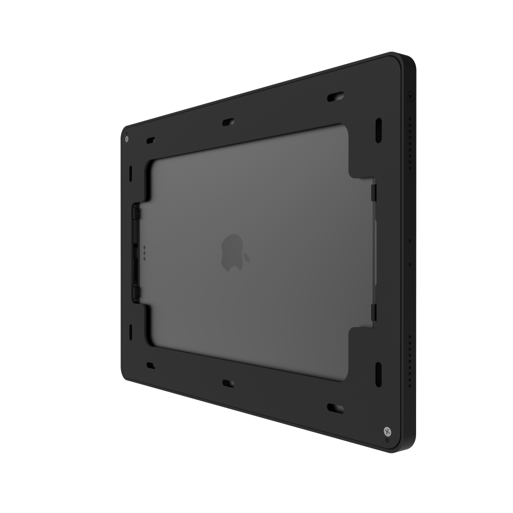 IPORT Surface Mount is the most elegant way to permanently mount iPad on a wall or solid surface. The Surface Mount System includes a minimalist aluminum bezel that doubles as the central mounting component and a PoE+ Adapter and USB-C cable to power and charge iPad. Surface Mount can be wired using a Cat5 cable up to 300 ft. from the power source. The bezel allows complete access to the iPad power button, microphones, and speakers and stays secure with built-in locking components in the bezel. Available in black and white finishes, Surface Mount is the best iPad wall mount to install iPad on any surface while ensuring it blends into your space.