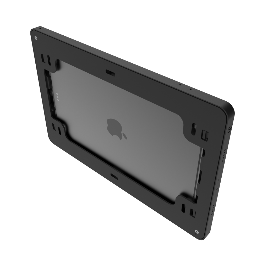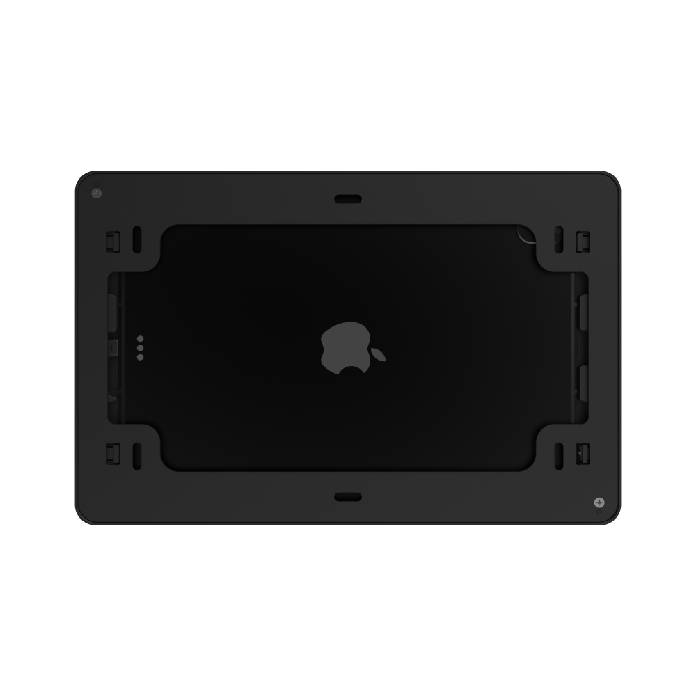 IPORT Surface Mount is the most elegant way to permanently mount iPad on a wall or solid surface. The Surface Mount System includes a minimalist aluminum bezel that doubles as the central mounting component and a PoE+ Adapter and USB-C cable to power and charge iPad. Surface Mount can be wired using a Cat5 cable up to 300 ft. from the power source. The bezel allows complete access to the iPad power button, microphones, and speakers and stays secure with built-in locking components in the bezel. Available in black and white finishes, Surface Mount is the best iPad wall mount to install iPad on any surface while ensuring it blends into your space.