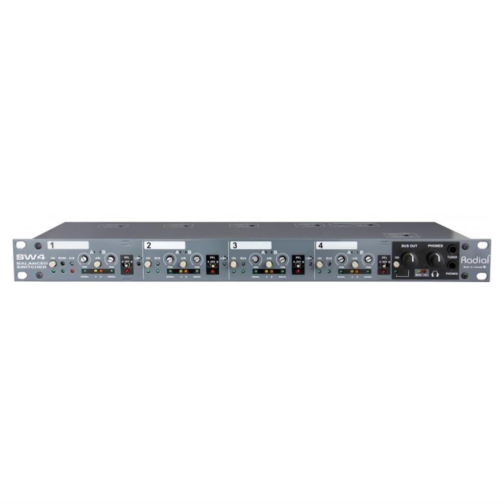 The Radial SW4 is a four channel balanced audio switcher designed to connect to multiple mixing consoles or wireless systems, providing greater operational flexibility or backup capabilities in a live performance or concert setting.