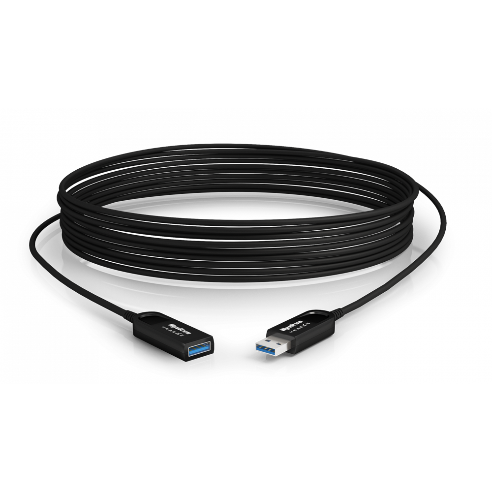 The CAB-UAOC-15 is an active optical cable supporting extension of USB signals ranging from 2.0 up to the 3.2 Gen 2 spec, meaning this cable can support 10Gbps at a distance of 15 meters (50ft). The CAB-UAOC-15 is great for connection of remote USB devices such as PTZ cameras, interactive touchscreens or smartboards, audio/video extension or simply high-speed data transfer over long distances. With the USB Male to USB Female design, you can connect and extend practically any USB peripheral device in seconds.