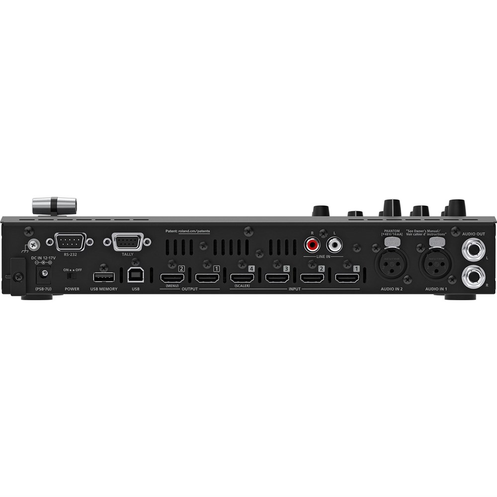 With two XLR mic inputs and selectable phantom power, the V-1HD+ lets you bring pro-grade microphones into your productions, including condenser broadcast mics. There’s also an 1/8-inch input for a lavalier mic or stereo audio source like a smartphone, plus another stereo input on RCA jacks. Embedded stereo audio from the four HDMI inputs can be included in your mix as well.