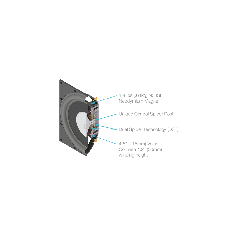 • 4 1/2” (115mm) precision-aligned voice coil with 1 1/2” (38mm) winding height