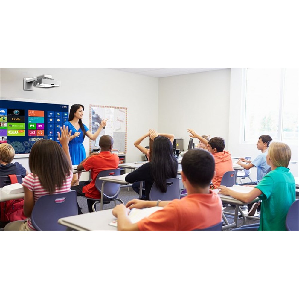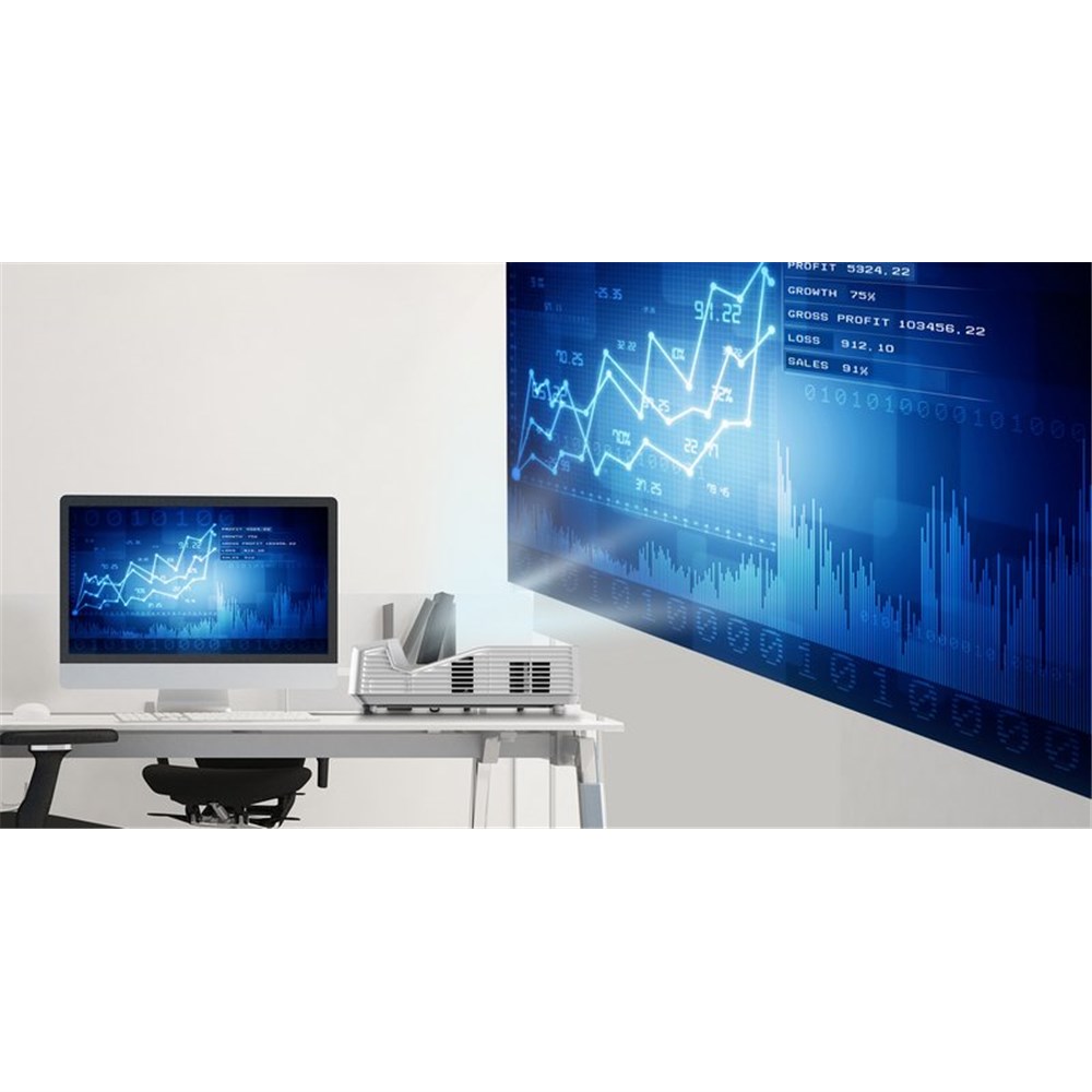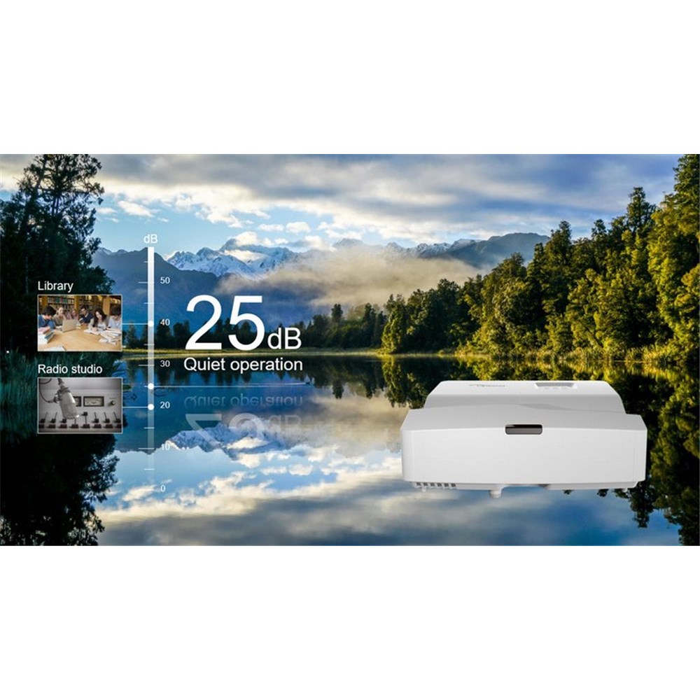The added benefit of the split screen feature and blackboard mode enables more effective interactions and productivity. This projector offers best performance and the best value over comparable products.Ultra Short Throw Lens DesignWith an ultra-short throw lens, you can project an impressive 100” image from just less than 30 cm away from a flat surface or screen. Ultra short throw projectors can be mounted close to the wall and eliminate the shadows, are the best solution for presentation scenarios.