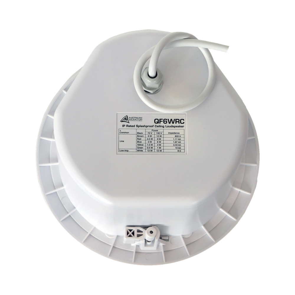 The Australian Monitor QF6WRC ceiling mount speaker is designed to provide a water resistant option to complement the QuickFit range of Australian Monitor ceiling speakers.