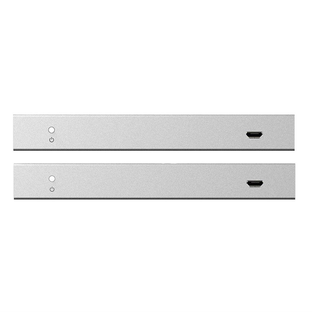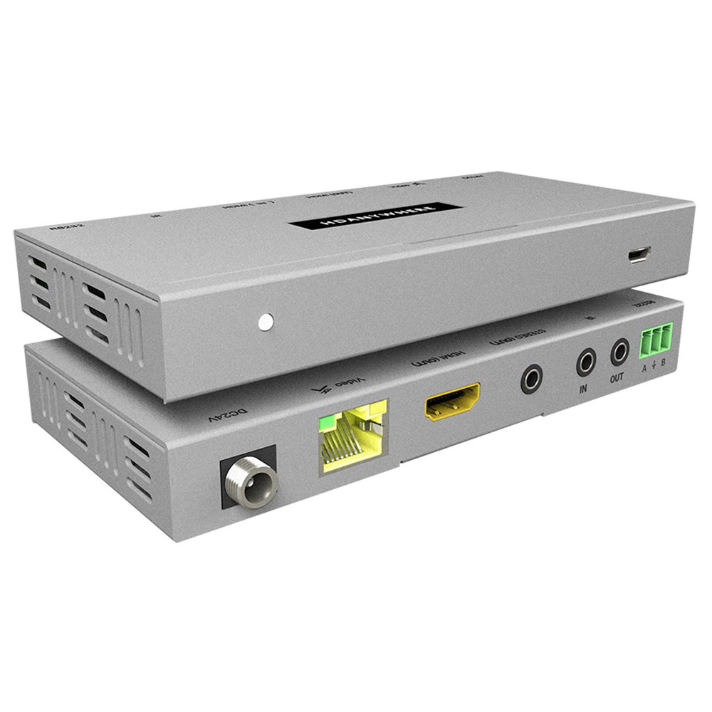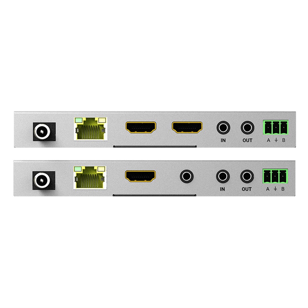 A long-range super-slim and ultra-lightweight HDMI 2.0 / HDBaseT 2.0 extender set - supports 18Gbps premium UHD/4K 60Hz 4:4:4 data rates, with all current HDR formats inc. Dolby Vision®, HDR10 and HLG up to 100 metres, over one twisted pair Cat cable. A de-embed stereo audio ouput port is available on the RX for as a helpful connection option for amplifiers or sounbars etc. Control via two-way IR or RS232 available on the receiver.