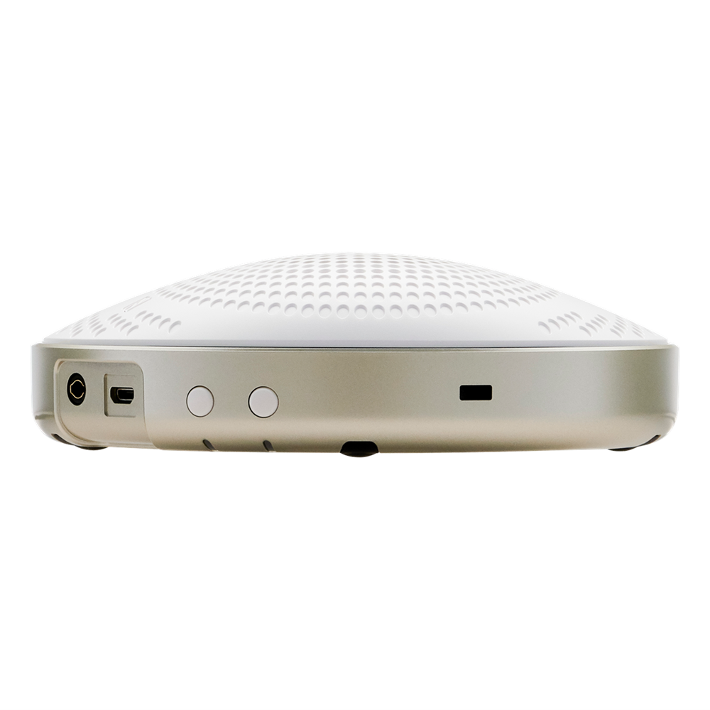 Take important calls wherever, whenever with this personal speakerphone, designed to offer professional-quality audio while connected to your laptop, phone or tablet. The built in rechargeable battery allows for complete portability for up to 10 hours, it’s the ideal device for open workspaces, huddle rooms, home offices, and travel. Available in a choice of white or black, the unit blends into any home or corporate office. Its small, lightweight, and space-saving design is perfect for portability and for deployment at laptop or mobile terminals. A headset jack allows for private listening and the option to enjoy music through the unit between