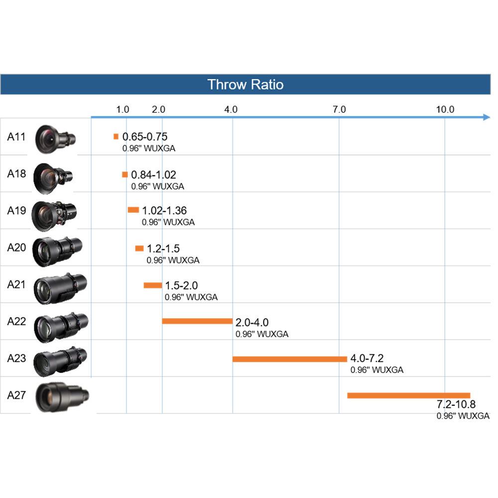 Designed to suit challenging installation environments, the ZU1900 supports 360-degree & portrait projection, 24/7 operation capabilities and 8 optional lenses ranging from TR0.65~10.8.